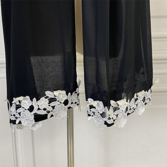 Modest Plain Satin Stripes Sleeve Abaya Dress - Purple