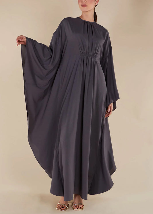 Elegant Solid Color Satin Wide Ruffled Sleeve Abaya Maxi Dress for Women