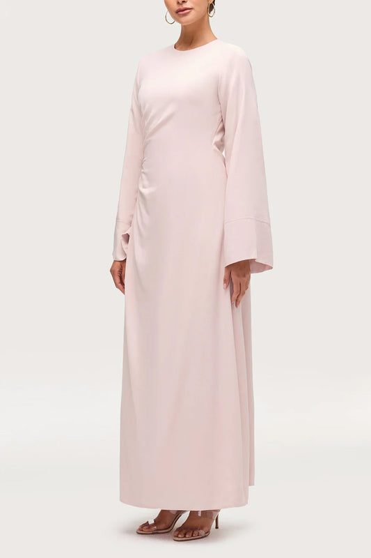 Asymmetric Pleated Floor-length Dress- Soft Pink