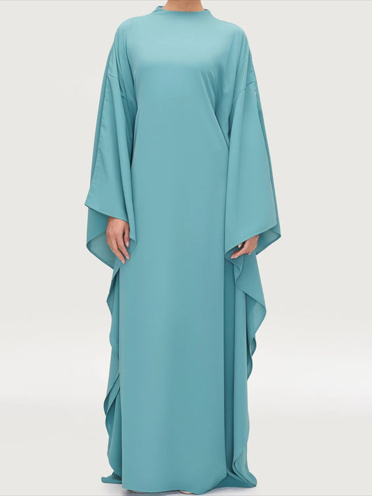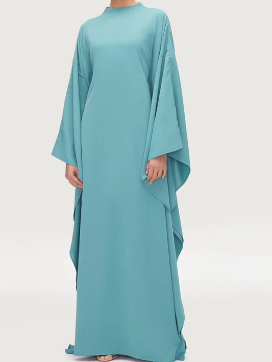Salma Wings Inner Tie Abaya Dress - Pool Blue