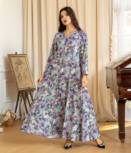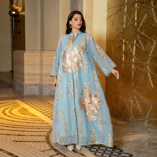 Luxury Gold Emboridered Patchwork Evening Dress - SkyBlue