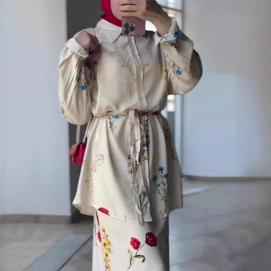Crewneck Ice Silk Breathable Print Maxi Skirt