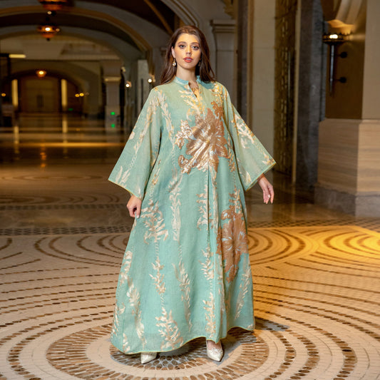 Luxury Gold Emboridered Patchwork Evening Dress - Green