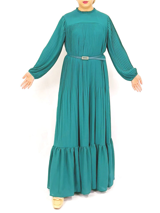 Muslim Pleated Abaya Dress - Green