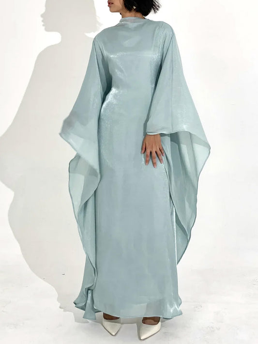 Elegant Satin-Textured High-Shine Abaya Maxi Dress for Women-Blue