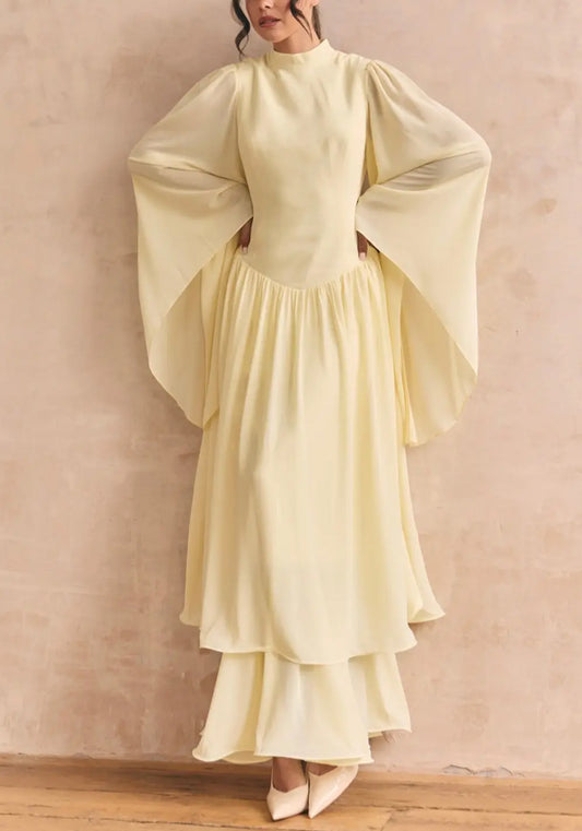 Ruffle Yellow Modest Muslim Maxi Abaya Dress