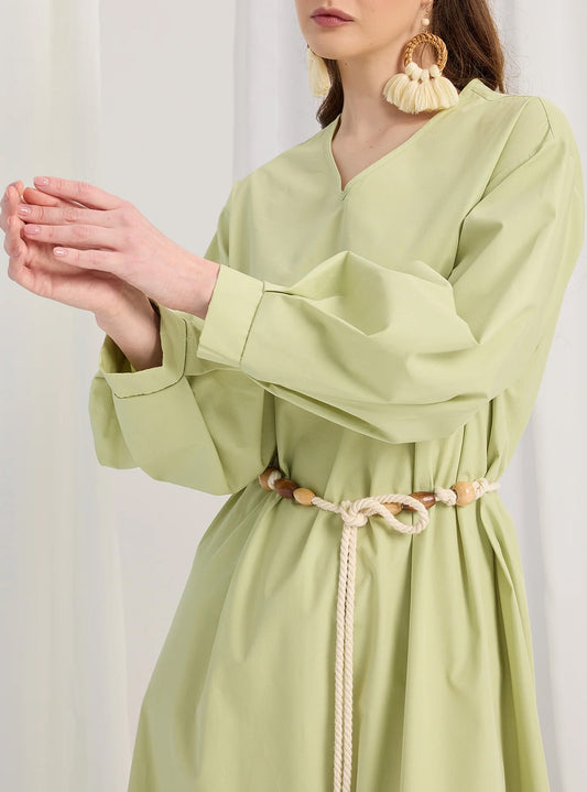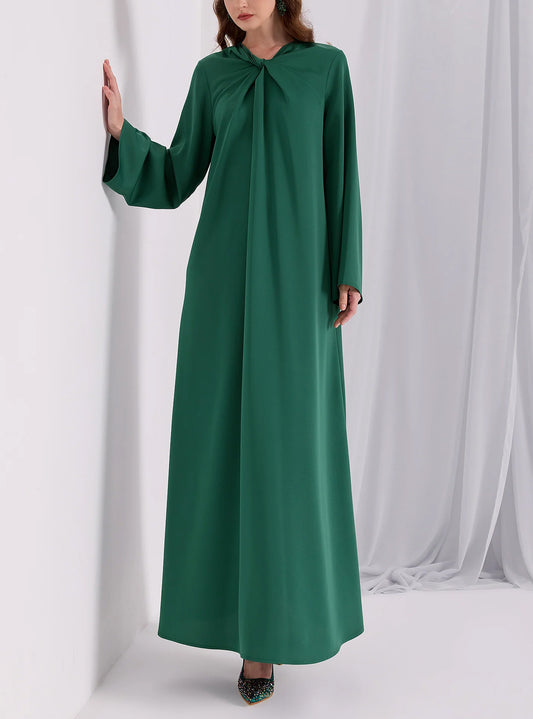 Modest Muslim Casual Waist-Tie Maxi Abaya Dress-Green