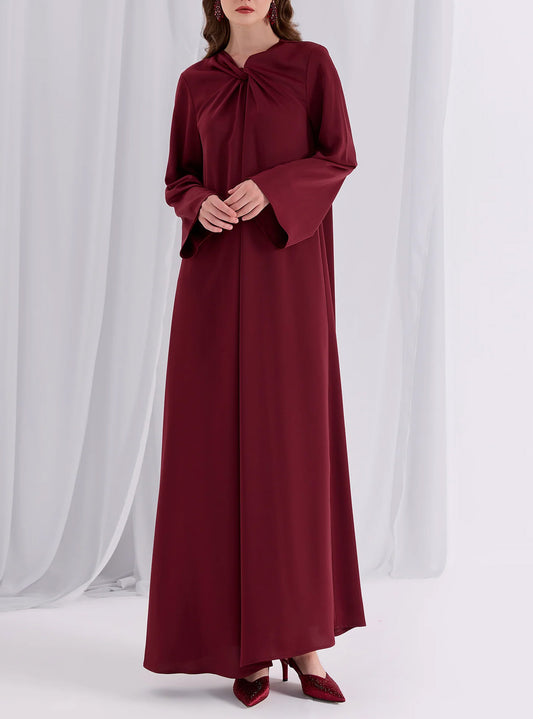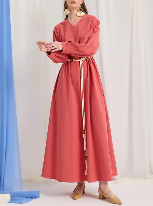 Modest Muslim Casual Waist-Tie Maxi Abaya Dress-Red