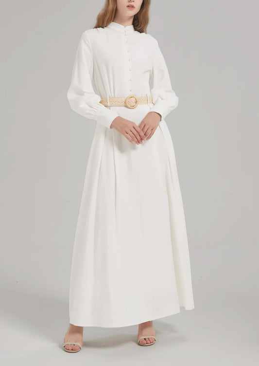 Stand Collar Front Half-Open Placket with Belt Abaya Maxi Dress