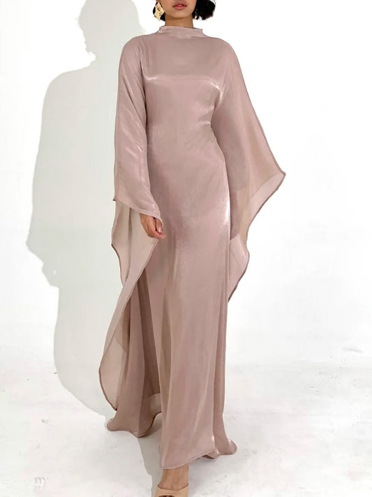 Elegant Satin-Textured High-Shine Abaya Maxi Dress for Women-Lotus Root Pink