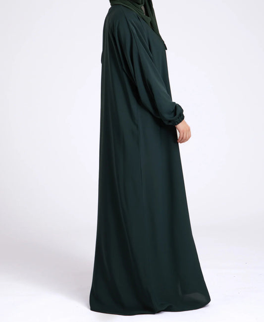 Classic Solid Open Abaya with Shrinking Cuffs - MossGreen