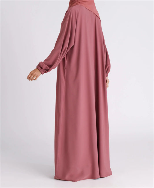 Classic Solid Open Abaya with Shrinking Cuffs - DarkPink