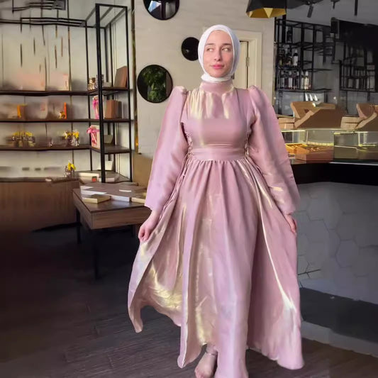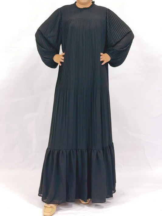 Muslim Pleated Abaya Dress - Black