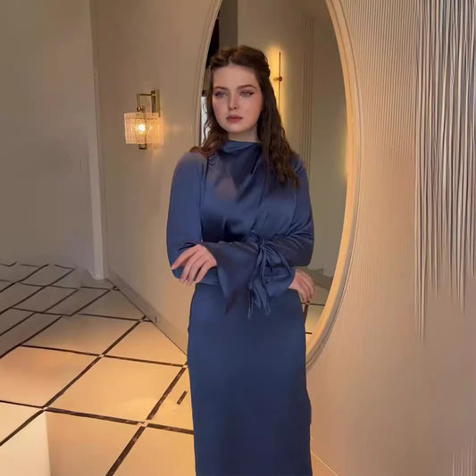 Satin Crossover Tie Cinched Waist Skirt Set