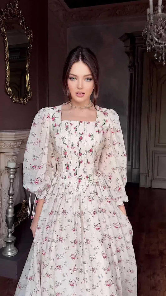 Long-sleeved Slim-fitting Ruffled A-line Dress