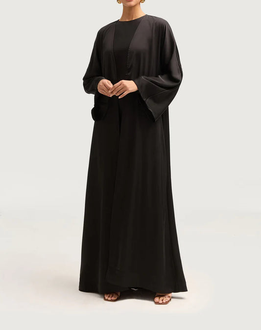 Sophia Heavy Satin Open Abaya Robe - Night Black