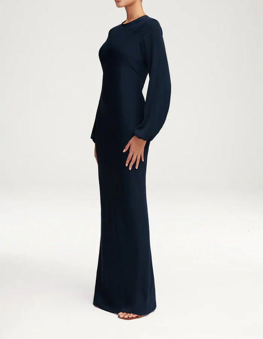 Sophia Heavy Satin Maxi Abaya Dress - Deep Navy