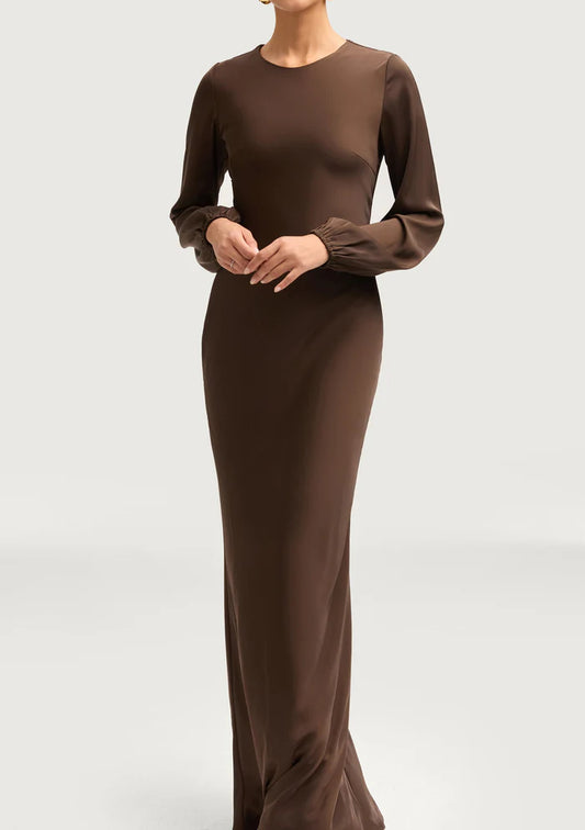 Sophia Heavy Satin Maxi Abaya Dress - Charming Coffee