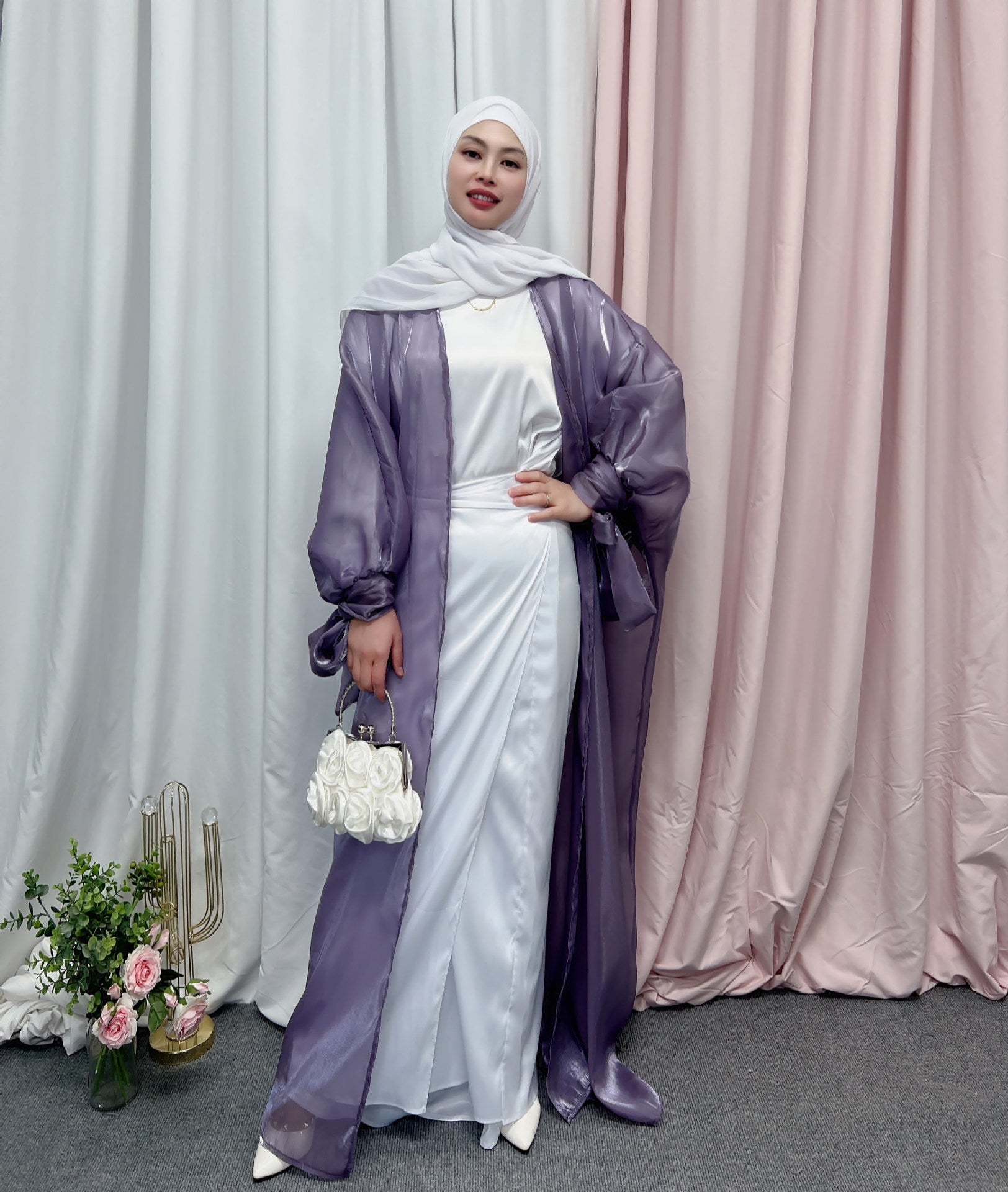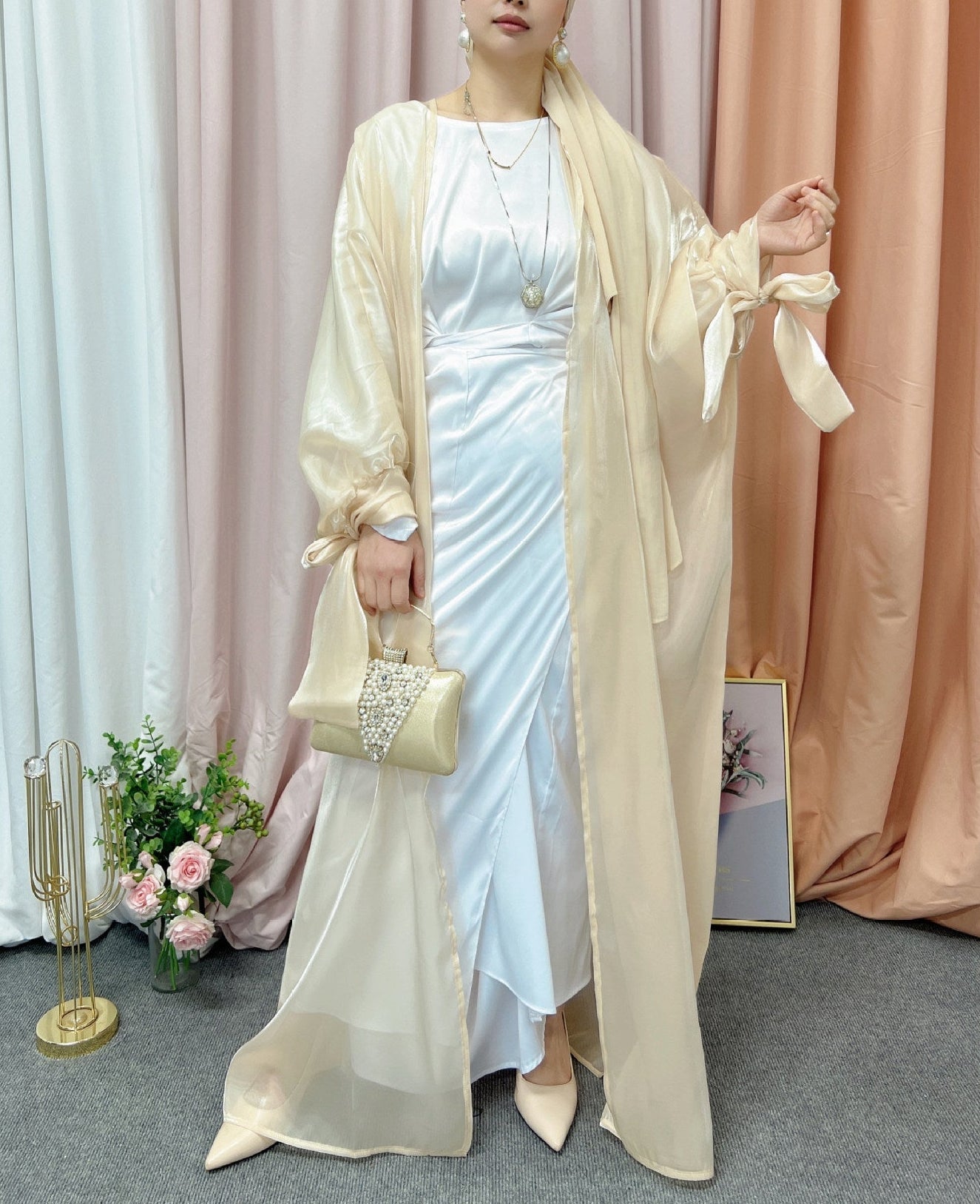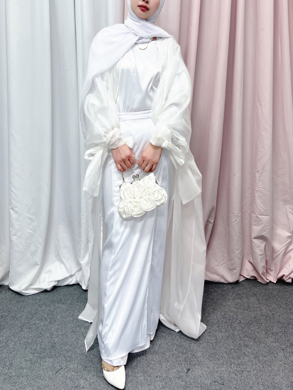Bubble Sleeve Open Abaya Elegant Robe Dress