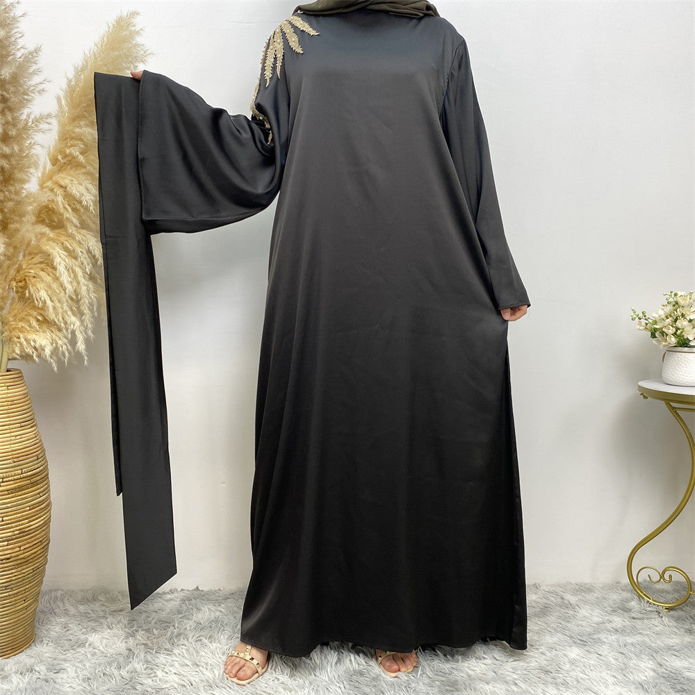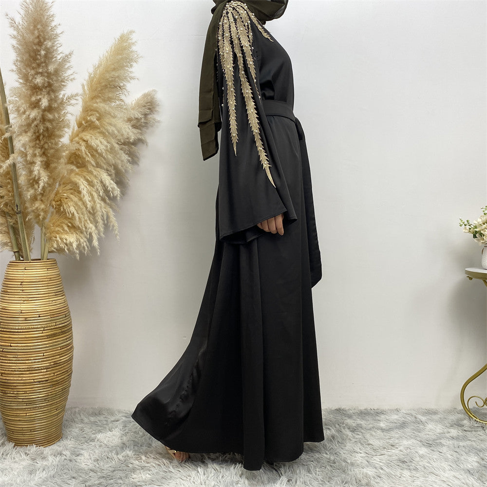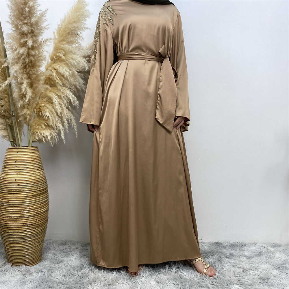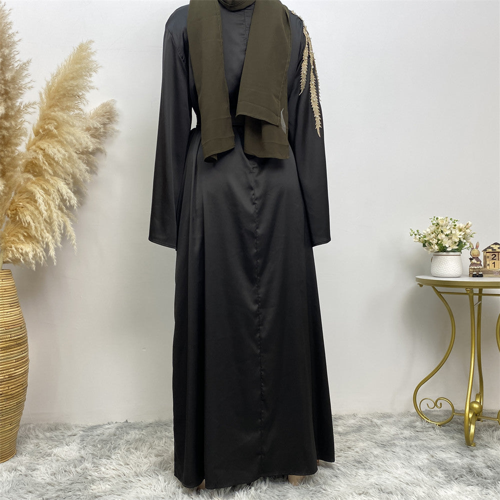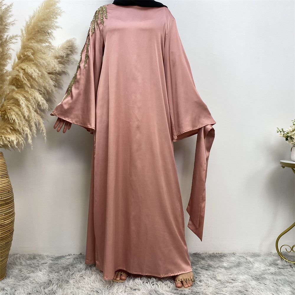 Elegant Pearl-Embellished Patchwork Modest Abaya Dress