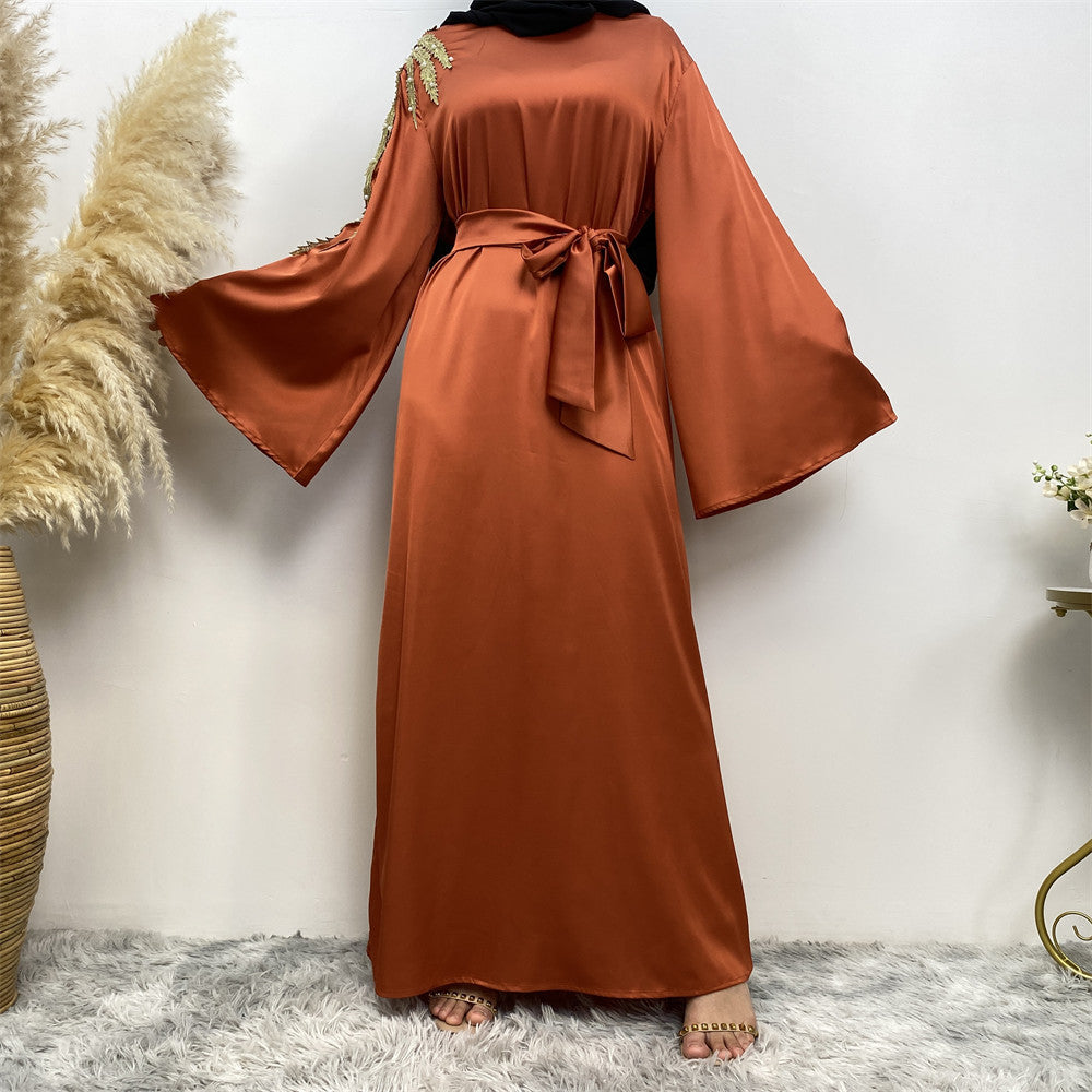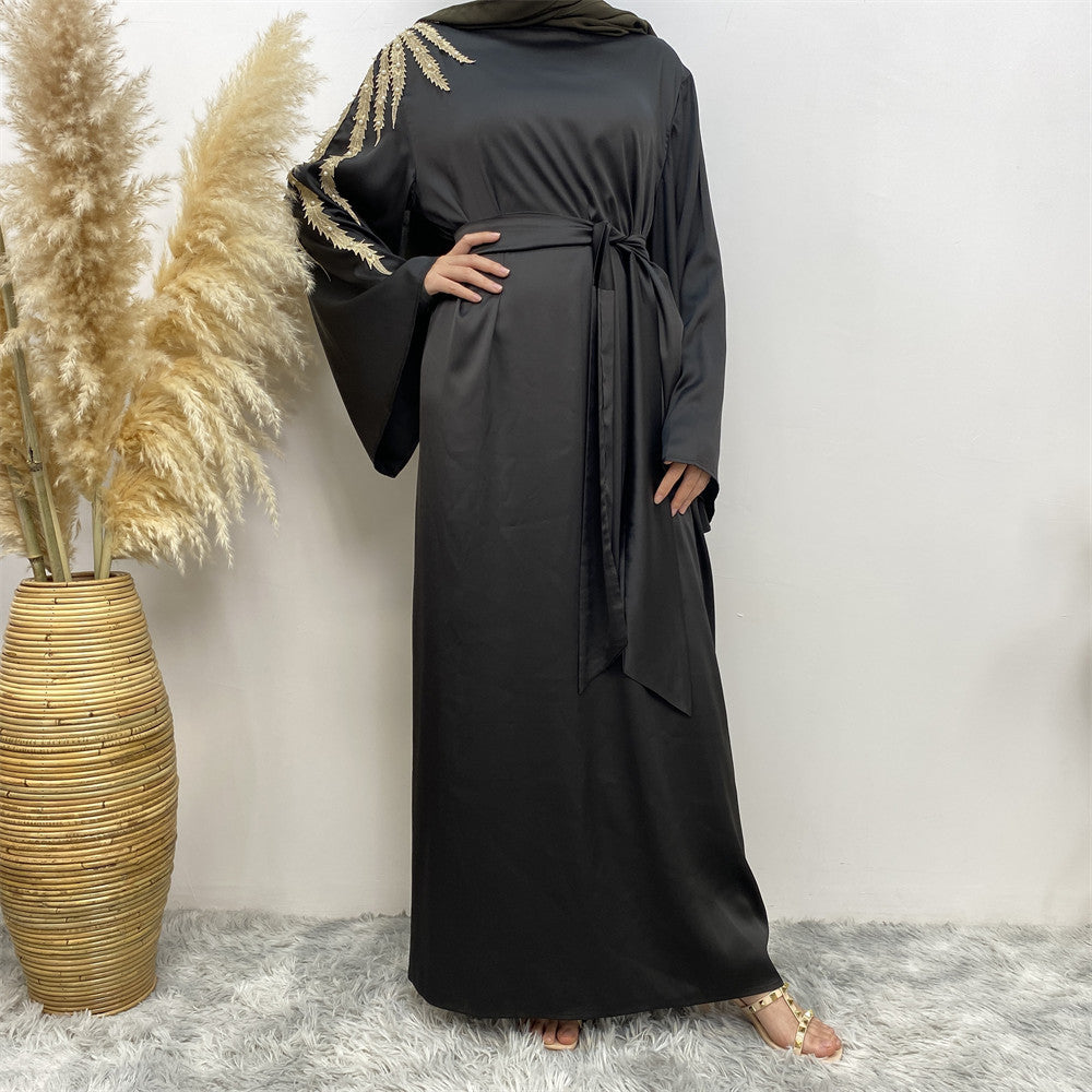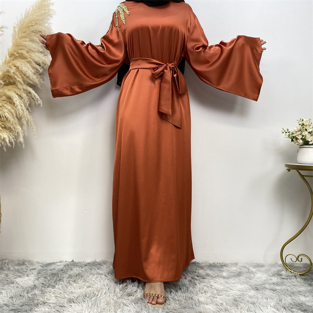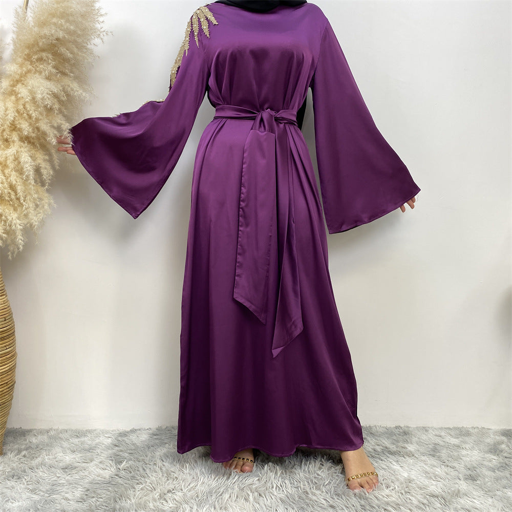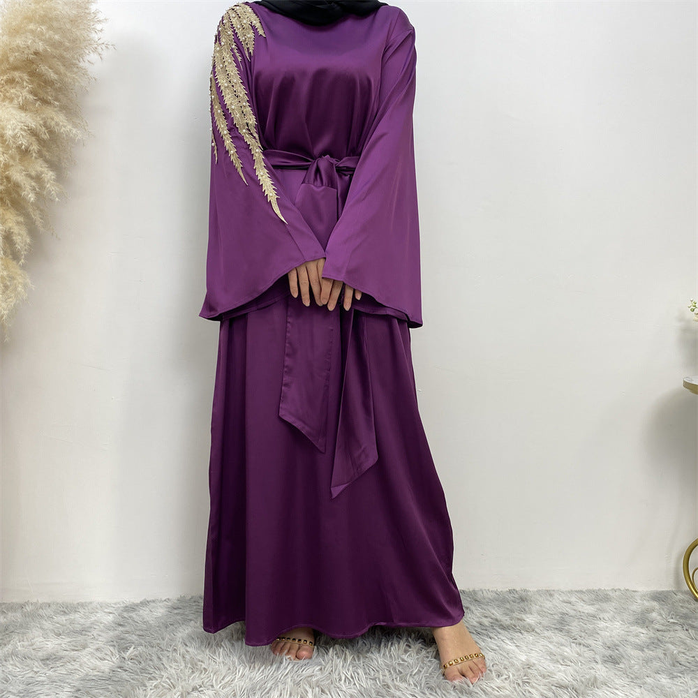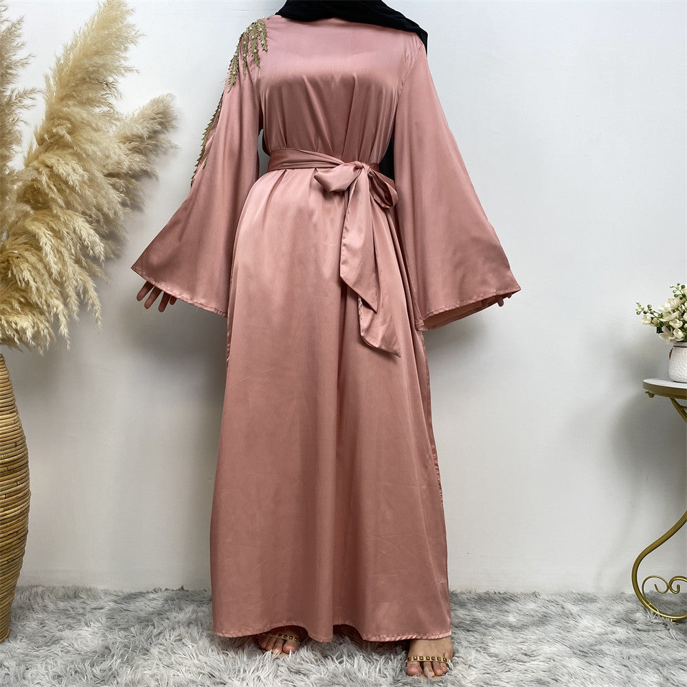 Elegant Pearl-Embellished Patchwork Modest Abaya Dress