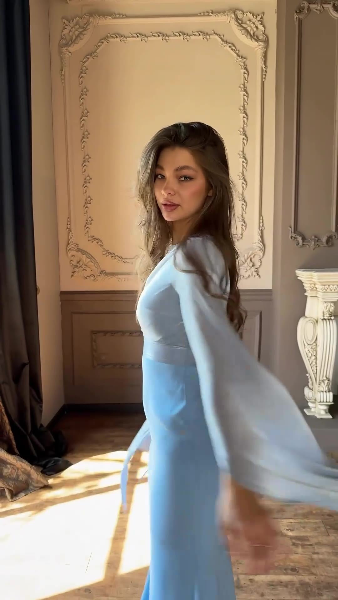 Large Swing Sleeves Satin Slim Dress