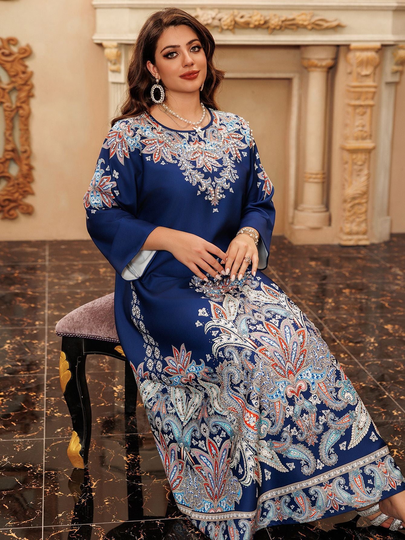 Luxury Pearls Rhinestones Floral Party Dress - Blue