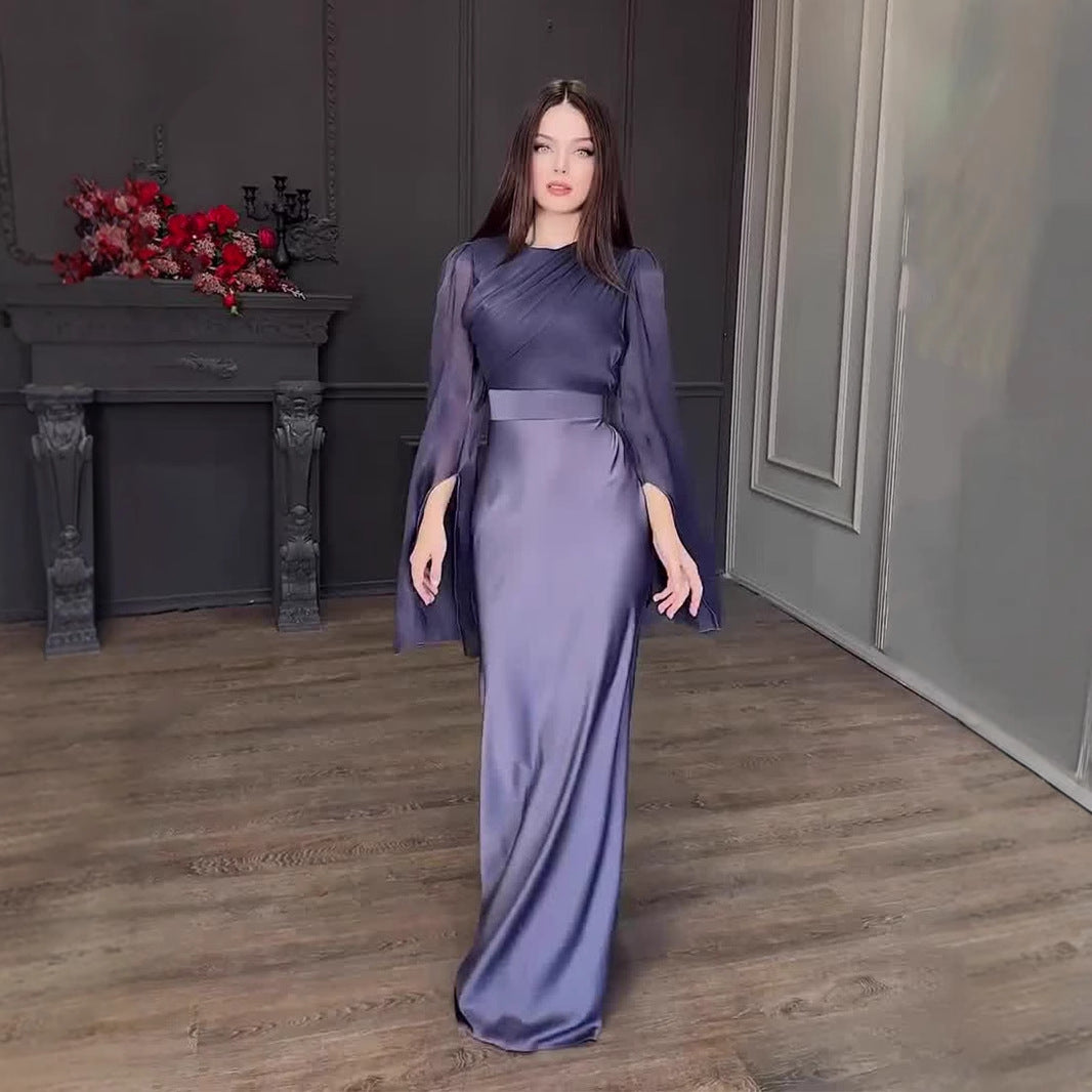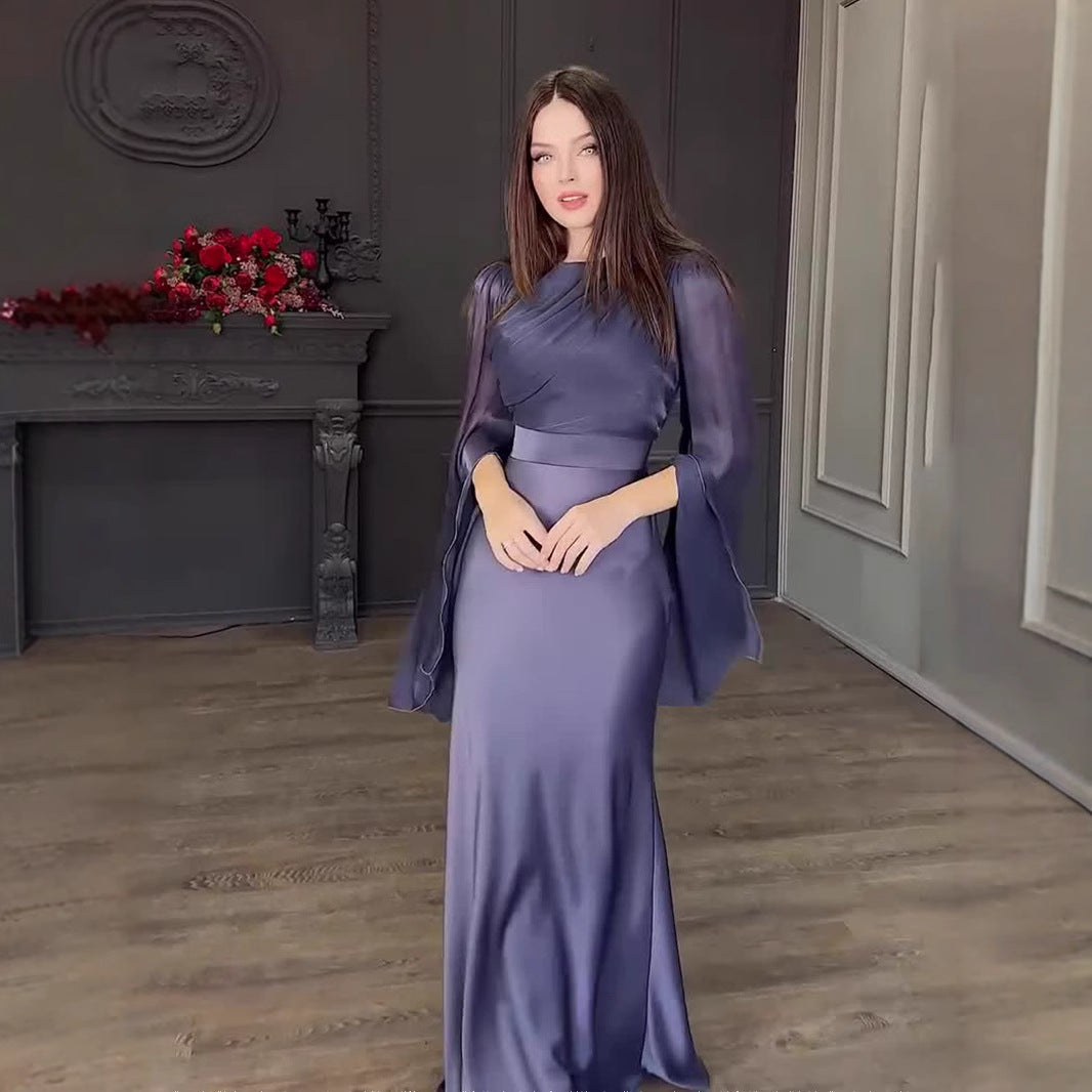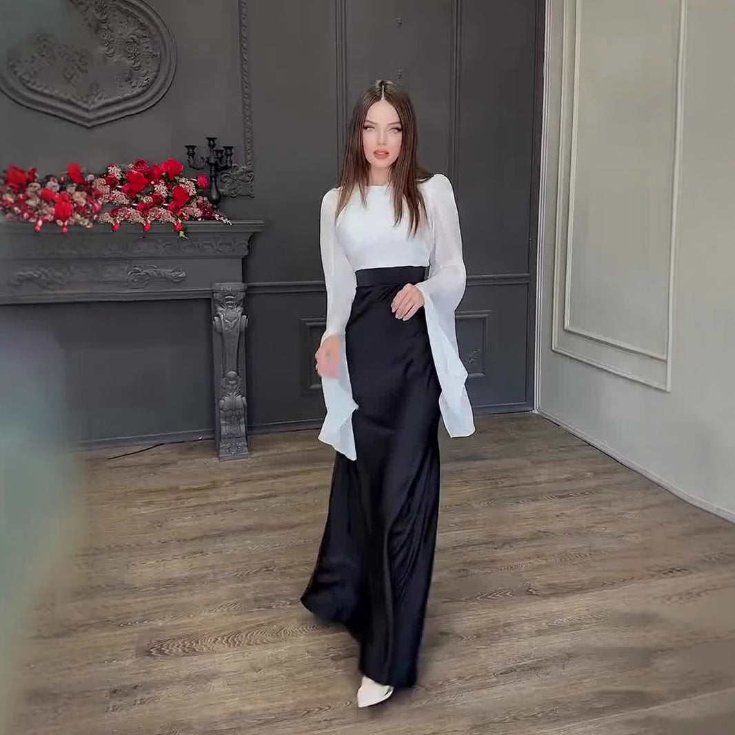 Patchwork Long Satin Slim Dress with Large Swing Sleeves