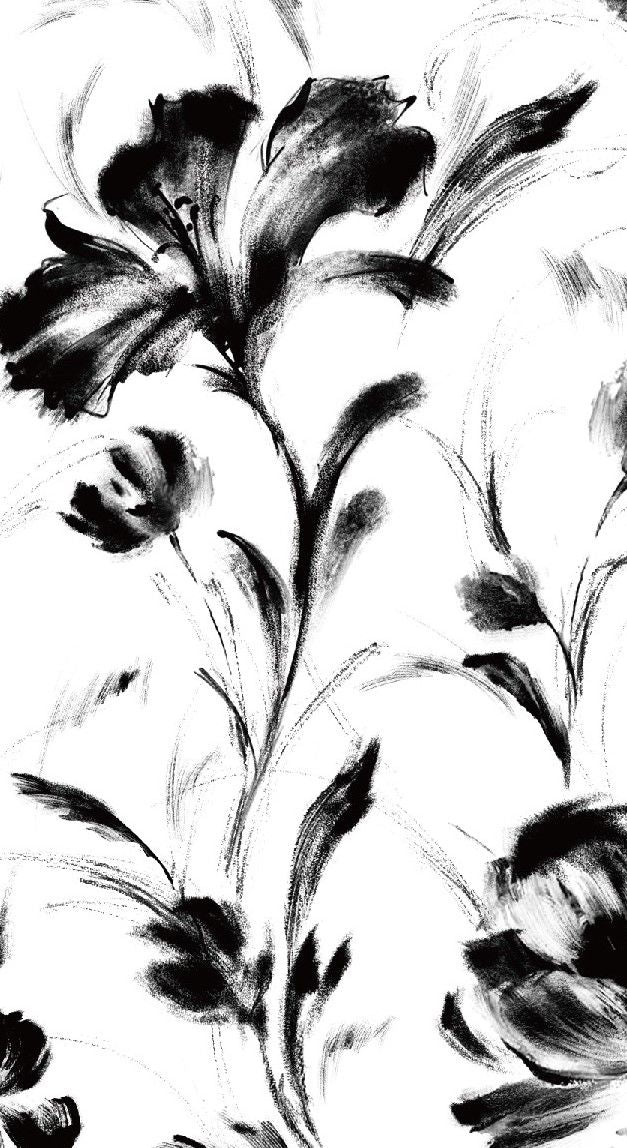 This dress consists of black lily, set against a white background. The flowers has a soft, artistic appearance. The focus is entirely on the floral motif, creating a classic, elegant look.