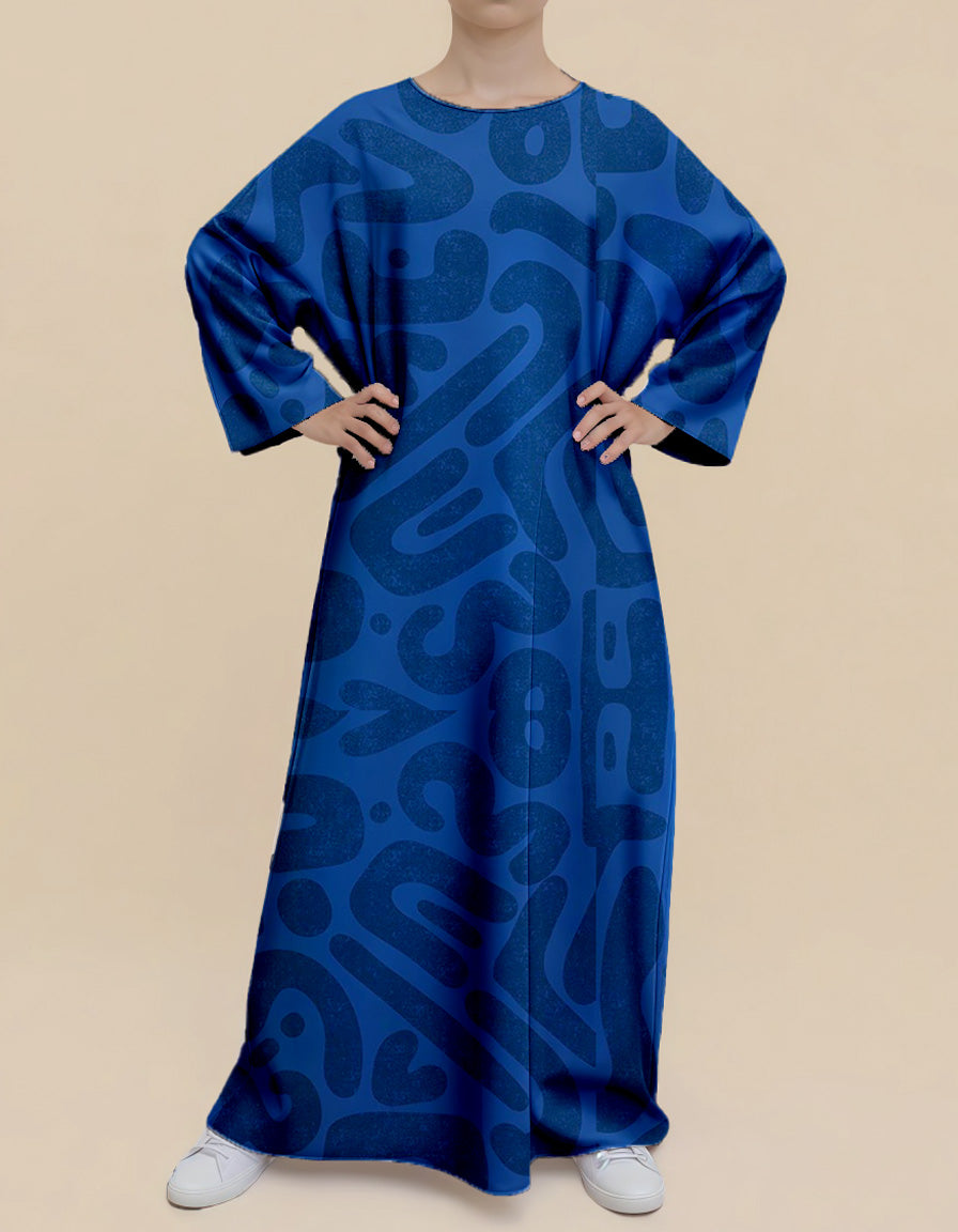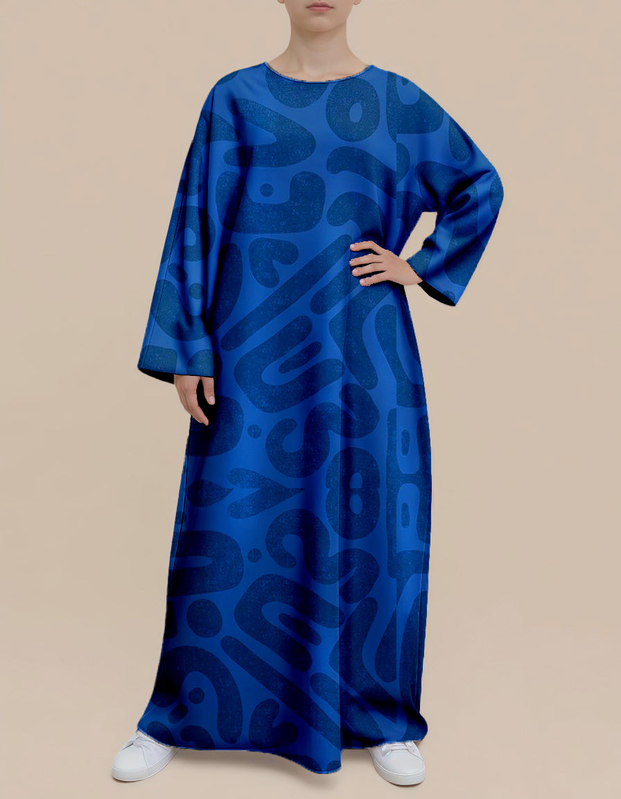 This dress features a design of graffiti - splattered texture combined with abstract patterns. The deep blue color has an inherent artistic feel. The loose fit suits daily wear, easily creating a casual and stylish look, allowing you to wear art on your body.