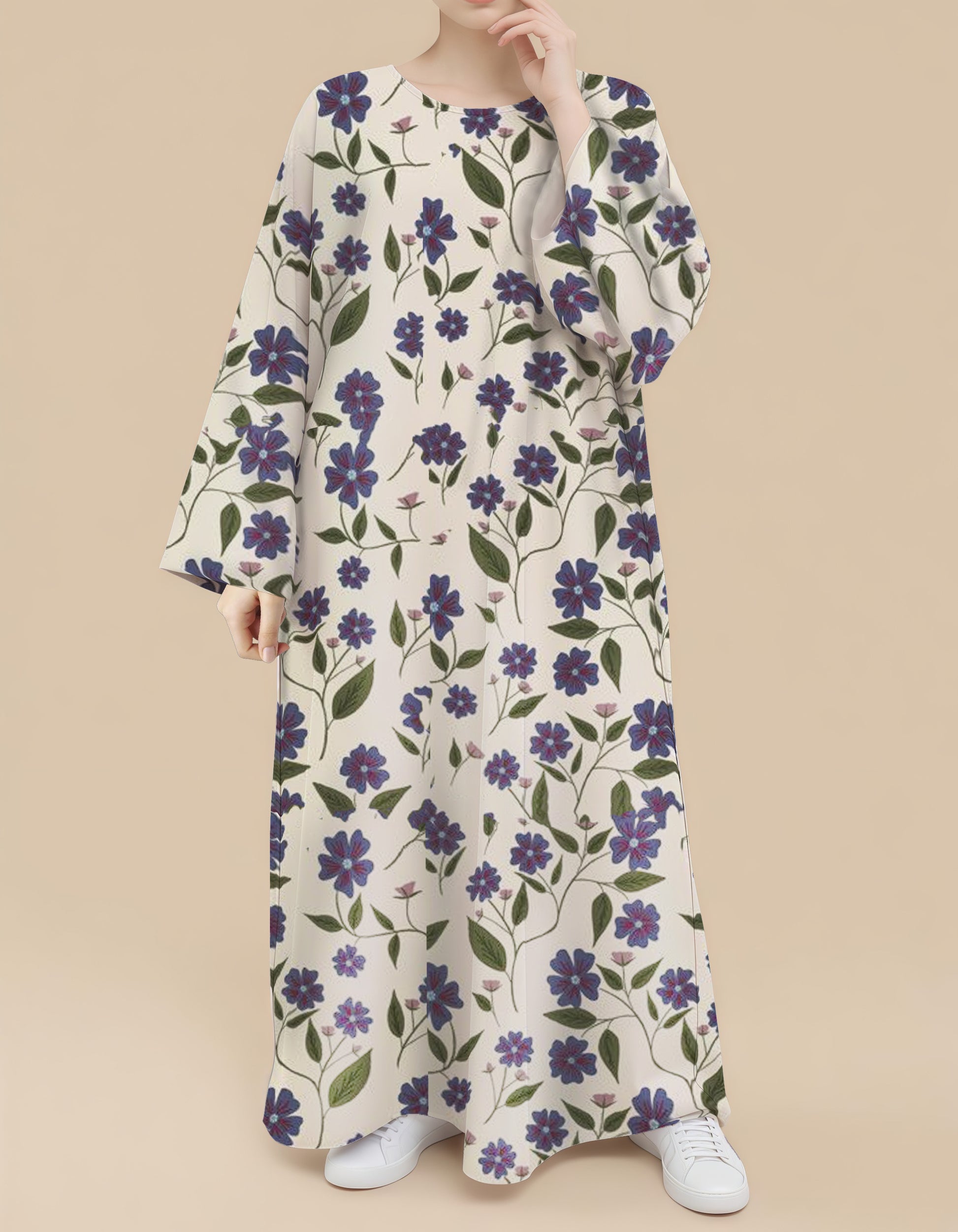 This kaftan blends plus‑size ease, modest coverage and a fresh garden print—no layering, no fuss, just grab & go comfort with pockets.