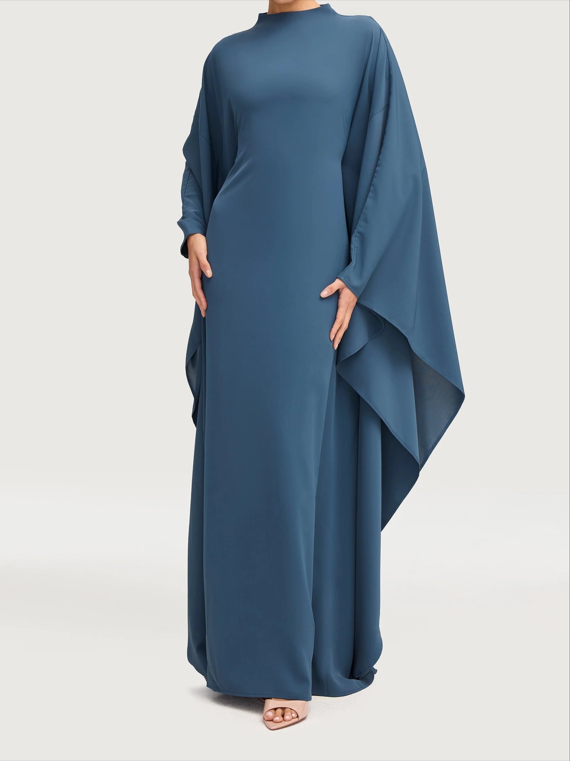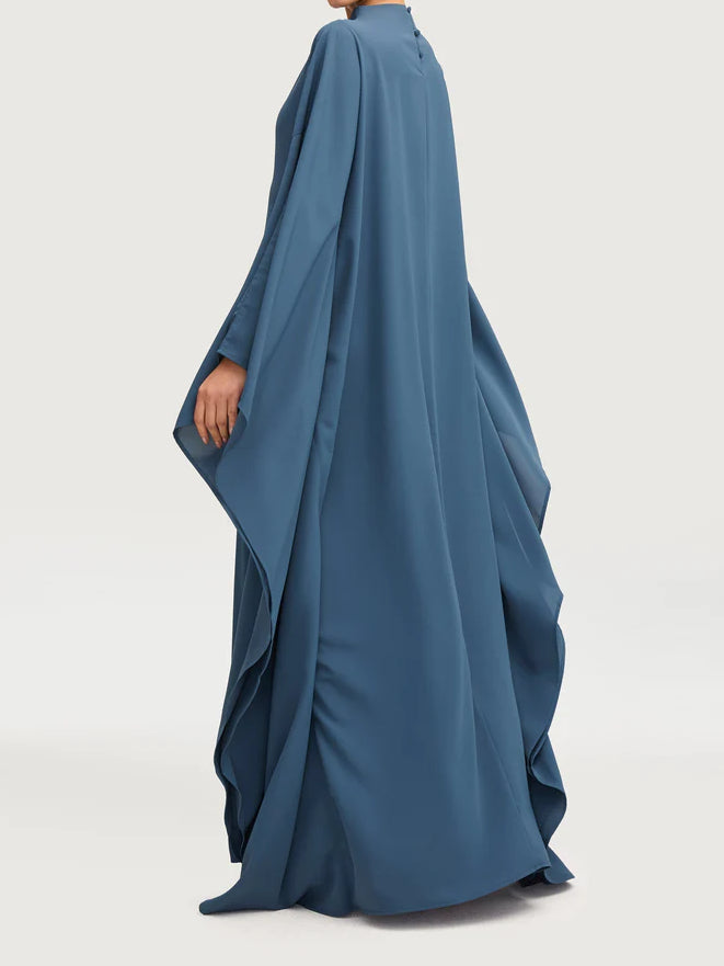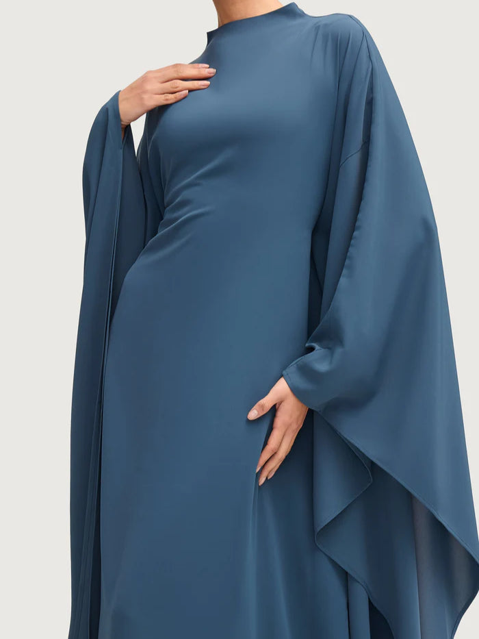 Salma Wings Inner Tie Abaya Dress - Navy Blue