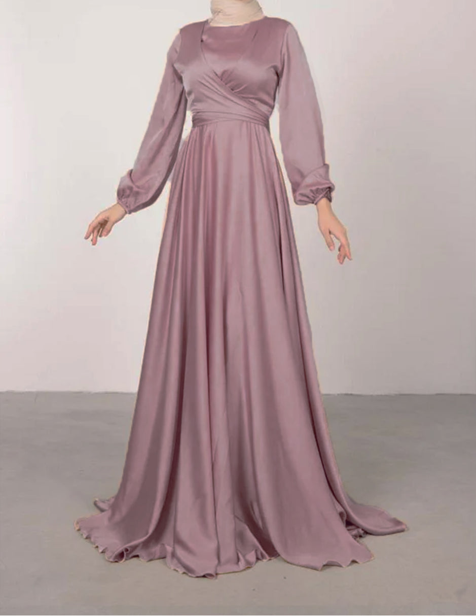 Satin Abaya Crossed Belted Evening Dress - Purple