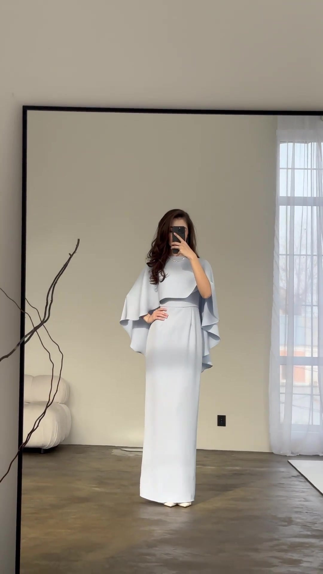 Satin Bat-cape Waist-cinching Long-sleeved Dress