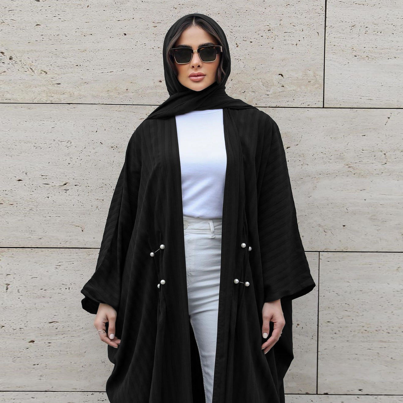 Sophisticated Black Open Abaya Robe