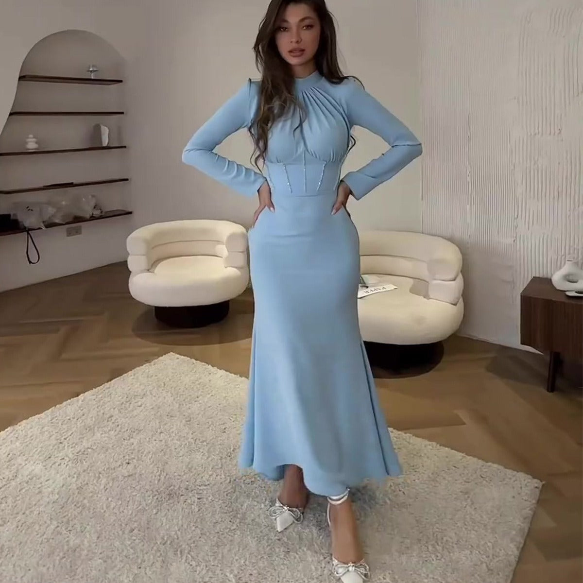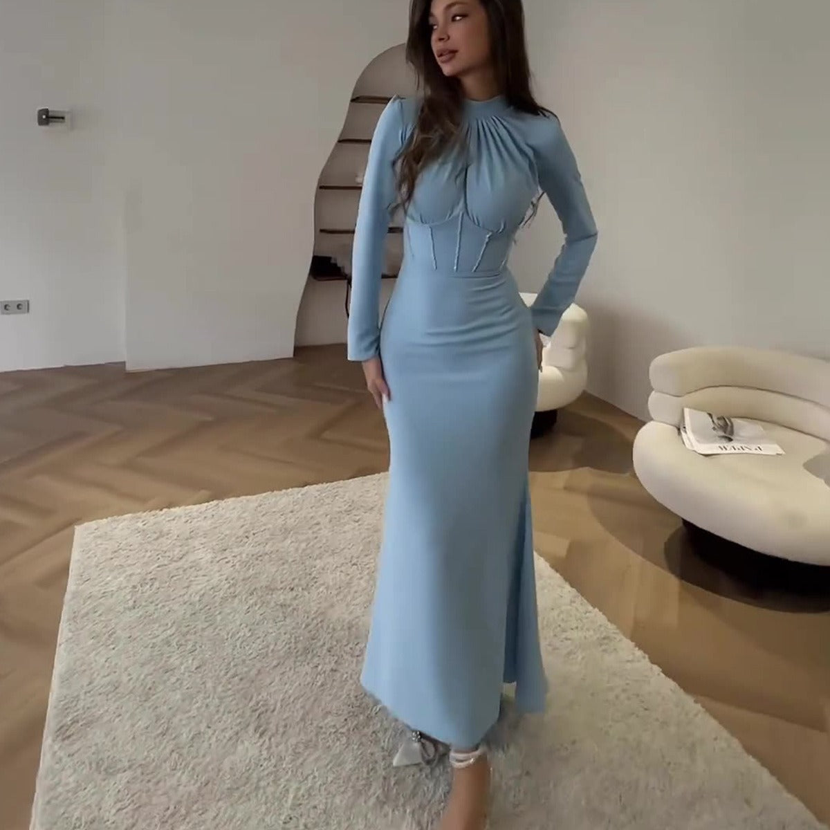 Women's Long-sleeved Ruffled Slit Irregular Dress