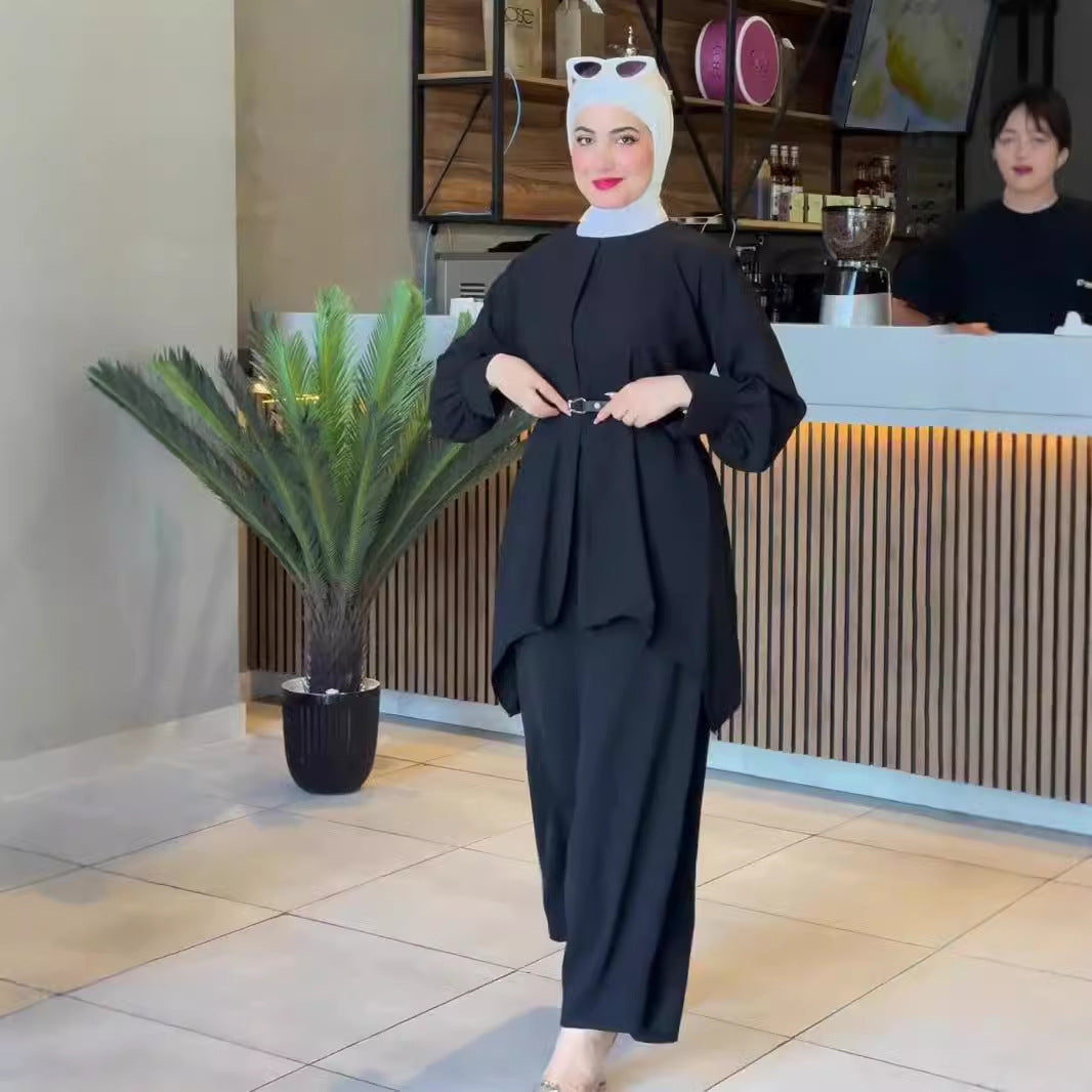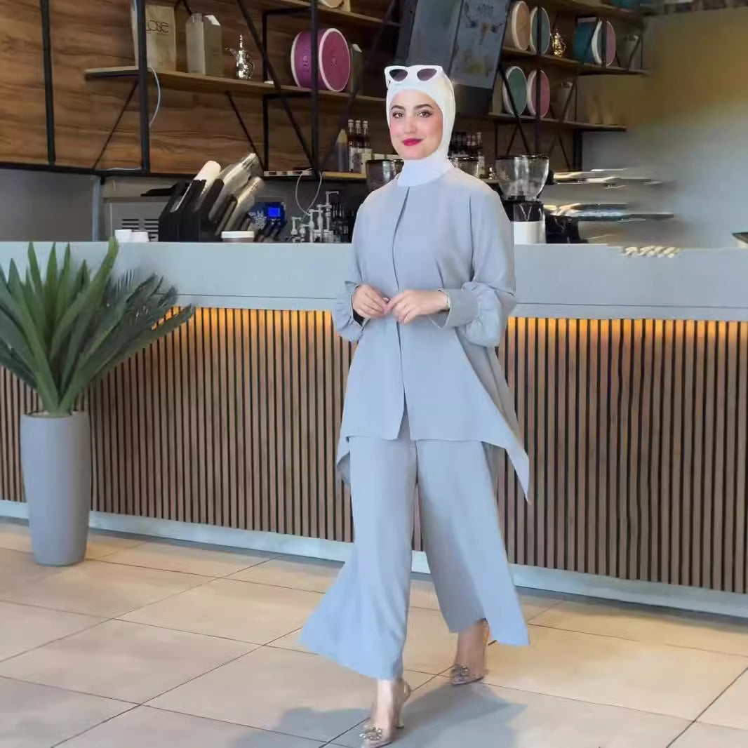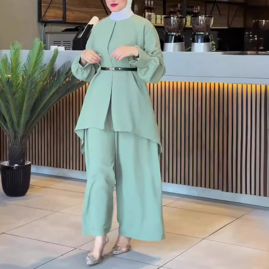 Women's Waist Cinched Bat Shirt Long-sleeved Solid Color Suit